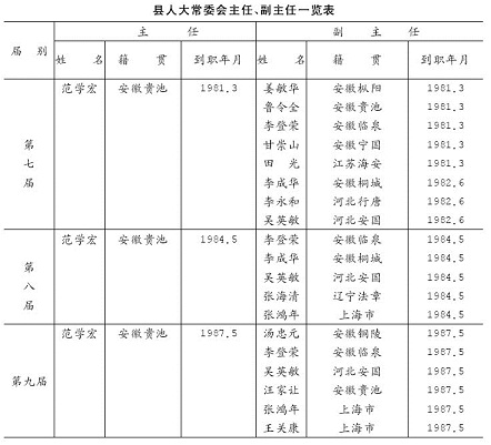 1984年3月至1986年5月,贵池县第八届人大常委会听取和审议贵池县人民政府、县人民法院、县人民检察院及政府有关部门的工作报告共30件次,决定人事任免111人次。其中个别任命副县长1人,决定代理县长1人;接受县长、人大常委会副主任、人大常委会委员因工作调动和离退休辞职各1人;决定任免委办局主要负责人68人次、两院副职领导人和检察委员会委员17人次、法院正副庭长、审判员和检察院检察员26人次。