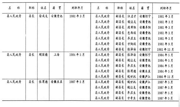 1981年3月,历时12年之久的贵池县革委会的历史宣告结束,召开了县第七届人民代表大会第一次会议,恢复贵池县人民政府名称。自此,历届县长、副县长均经县人民代表大会选举产生。