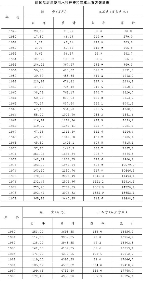 上述三类工程经费,由省、地水利部门下达年度计划,水利行政部门管理。1986年后,农水经费改为切块按排,每年由县财政局下达指标。