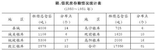 民间存粮50年代初,本县的国营粮食企业收购与调入的粮食,绝大部份是借用民房(祠堂、庙宇)储存。1950~1951年,全县租借民房81处,总储量17350吨,而当时国营粮库仓容仅有2000吨。