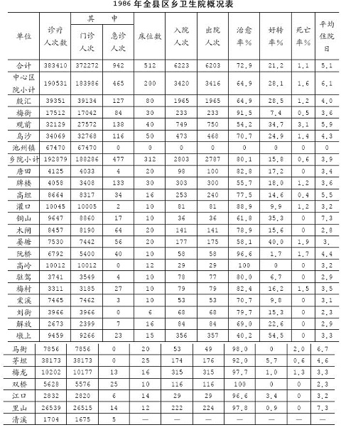 1986年全县区乡卫生院概况表