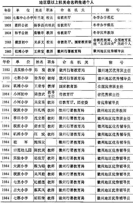 建国后县建立教育工会,教师成为工人阶级的一员,受到社会上尊重。但“文化大革命”中,许多骨干教师受到错误批判。中共十一届三中全会以后,县党政领导机关认真贯彻落实知识分子政策,对教师中的冤假错案进行了平反昭雪。1982年至1985年,教师中先后有21人当选为县第三届、第四届人民代表;有27人当选为县第一届、第二届政协委员。1983年以来,有19人先后被评为地区级以上的模范(优秀)教师、优秀班主任、优秀辅导员。全县有108名教师加入了中国共产党,有182名教师加入了共青团。至1985年,全县教师中有共产党员216人。1985年9月10日,由县党政主要负责人主持,在人民影剧院召开千人大会,隆重庆祝建国后第一个教师节,尊师重教风气在社会上逐渐形成。
