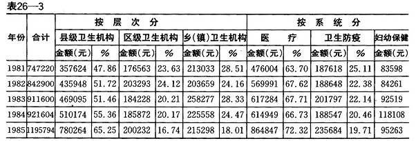 解放初期,卫生经费紧张,民国38年建县卫生院时,基金仅80万元(旧人民币)。1958年,国家对卫生事业投资总计2.83万元。随着国民经济的发展,国家对卫生事业投资逐年增长,1966年为13.80万元,1978年为52.80万元。1985年达119.58万元,占同年全县财政支出的6.72%。