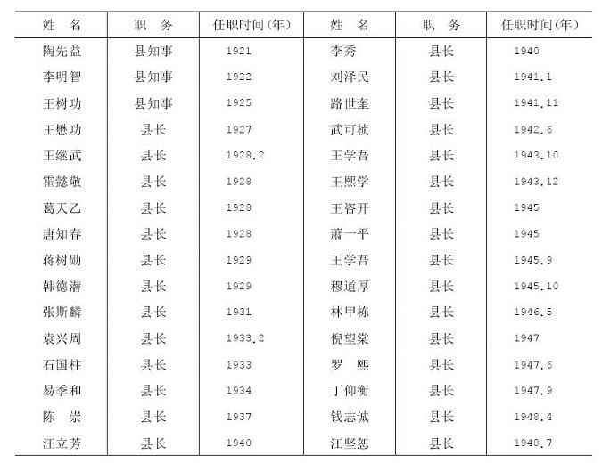 民国时期县政府县长(知事)更迭情况表