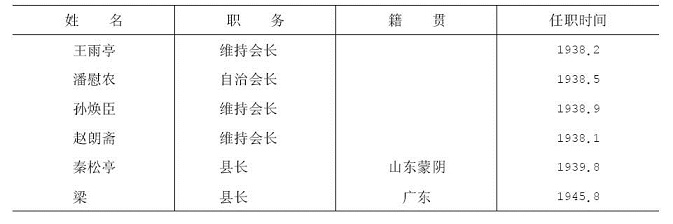 附:日伪时期县维持会长、县长名录表
