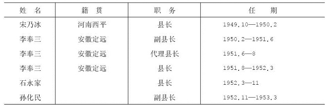 民主政府县长更迭情况表