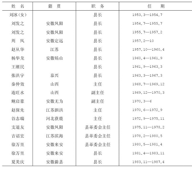 人民政府县长、副县长(革命委员会主任、副主任)更迭情况表