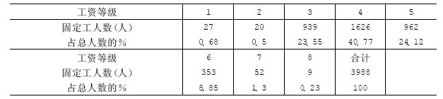 1957年底,铜官山矿务局生产工人的工资等级情况列表如下: