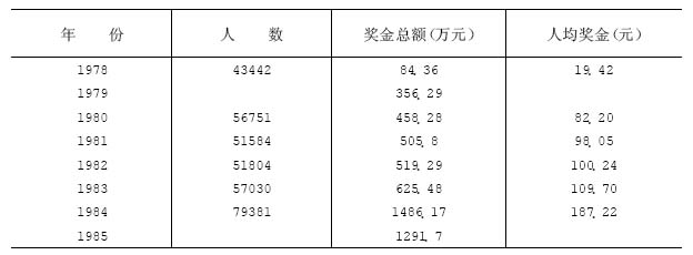1978年起,开始恢复奖金制度。到1984年,全市普遍实行了奖金制度,这年全市奖金发放总额达1486.17万元。1985年,全市奖金总额为1291.7万元。