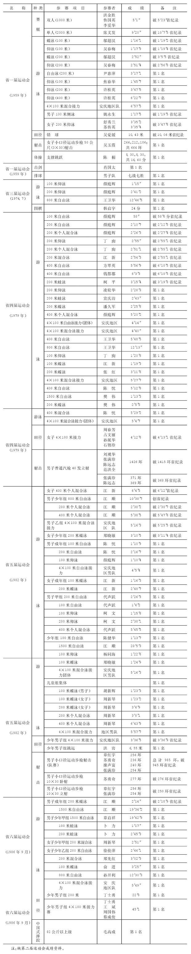 表225参加省历届运动会运动员最佳成绩