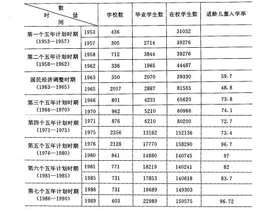 新中国建立后,政务院于1951年10月发出《关于改革学制的决定》,规定小学修业为5年,实行五年一贯制;儿童入学年龄定为7周岁。1952年秋,安徽省教育厅通知停止执行“五年一贯制”,仍沿用民国时期颁布的“戊辰学制”。