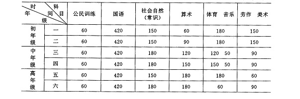 民国元年(1912年),废除“癸卯学制”。是年,正式公布新学制,即“壬子学制”。规定:初等小学堂修业4年、高等小学堂修业3年。民国11年,又公布了新学制,即“壬戌学制”。规定:初级小学4年、高级小学修业2年,为四、二段制。民国18年,再次公布新学制,即“戊辰学制”。规定:小学修业6年,前4年为初级小学,后2年为高级小学;儿童入学年龄定为6周岁。