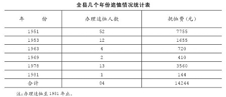 建国以后,本县抽出专项资金用于解决优抚对象的临时性困难(医药费和房屋修建等)。1949—1959年中,累计26776户(次)得到临时补助费183928元,每户平均6.89元。1981—1985年(不含1983年)的4年中,共发临时补助款102108元。