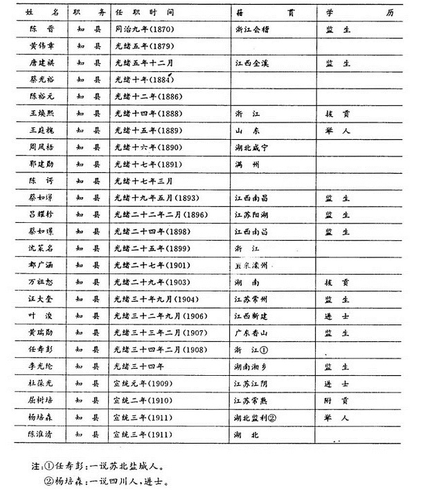 1912年民国成立后,改县署为县知事公署,改知县为县知事。县公署设两科,第一科掌管民政、教育;第二科掌管财政、建设。