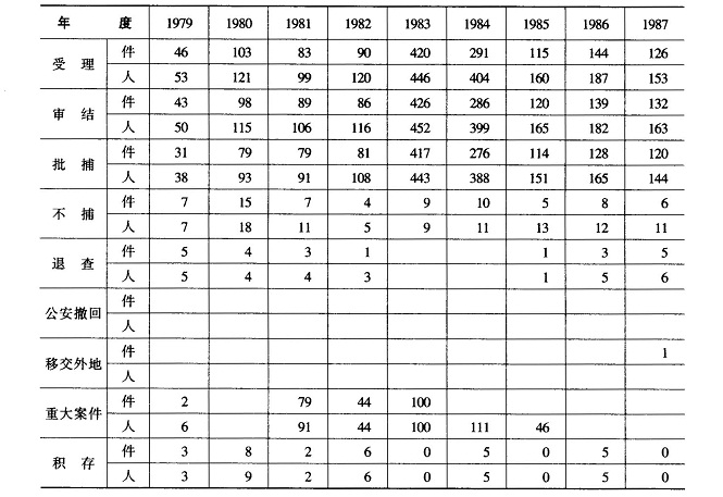 附:宣城县人民检察院1979—1987年审查批捕刑事案件情况统计表
