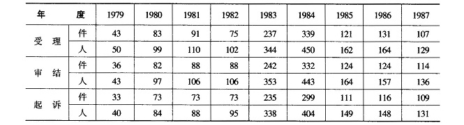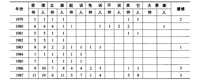 宣城县人民检察院1979—1987年法纪案件处理情况统计表
