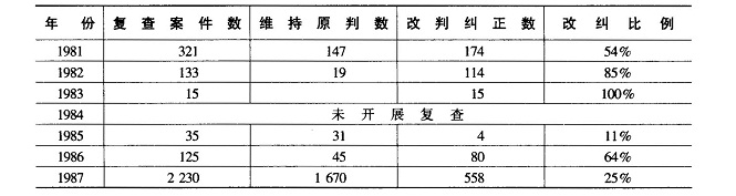 1962年冬,最高人民法院颁布《关于人民法院工作若干问题的规定》,人民司法工作恢复了实事求是的传统,审判工作走上了正轨。1968年春,法院实行军管,刑事审判职能由“军管组”取代。这一时期,社会主义法制遭到严重破坏,司法工作的程序及各项审判工作的制度均被“砸烂”。判处的冤、假、错案不断上升(据1979年复查结果表明,1968—1973初的5年内,全县判处的837件刑事案件中反革命案件有137件,其中纯属冤、假、错案的就有84件,占反革命案件的60%以上)。