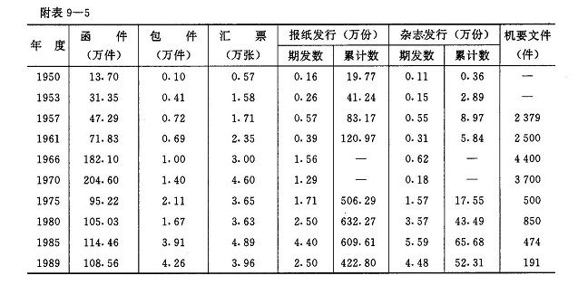 投递线路民国时期,邮件投递全靠邮差肩扛腿跑,农村邮件只投递到邮政代办所和邮政信柜,由收件人领取或捎转。1950年,逐步投递到乡、农业生产合作社和农村中心小学。1952年,全县投递线路单程为372公里,主要为乡邮员步班投递。1957年,投递线路延长到744公里,投递方式亦逐步改为步车(自行车)混合班,投递频率加快。至1963年,县境农村投递线路单程增至1011公里,全县34个公社303个生产大队全部通邮。从是年起,全县各邮电局所均辟有固定投递段2~3个。1966年12月,为解决社队邮件逐日投递问题,县邮电局在农村社队配备“亦农亦邮”乡邮员17人,并组织捎转站13个,充实了投递力量。报刊、平信直接投递到的生产队达到484个,捎转的生产队431个。1969年10月,由每个公社推选1~2人,专门担任公社至生产大队的投递任务。是年,全县农村投递线路单程总长达到1343公里。从1970年起,全县各邮电分支机构所在地先后通车,农村投递线路随之有所缩短。1984年,县邮电局有自办农村投递线路31段,单程总长1018公里,委办农村投递线路2段67公里,城区投递段道3条3公里。1989年,全县24个邮电局所,共设乡村投递线路33段,县城投递线路4段,单程总长1133公里。