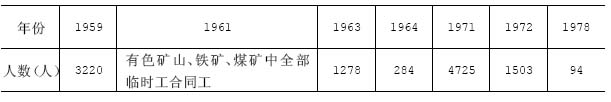 〔从农民中招工〕本市是一座工矿城市,在1978年以前,城镇新增长的适龄劳动力不能满足和适应矿业生产发展的需要,职工来源和补充主要是来自农村,尤其是矿山井下等行业工人,绝大多数是从农村中招收的。