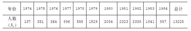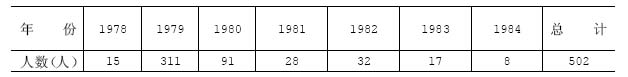 1975年到1981年,全市共招收下乡知识青年5842名,各年招收人数如下:1975年1532名,1976年1632名,1977年639名,1978年665名,1979年1068名,1980年238名,1981年68名。
