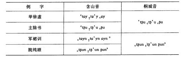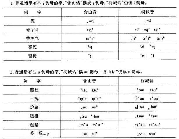 3.“桐城话”将普通话中的一些y和y介音的字读音与u和u介音的字相同,而“含山话”