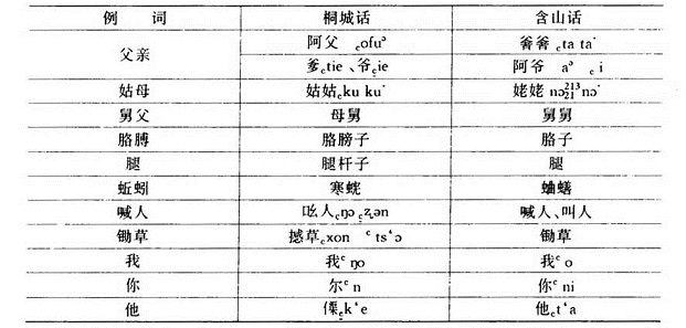 4.有一些常用词的说法,“桐城话”与“含山话”也有较大的差别。