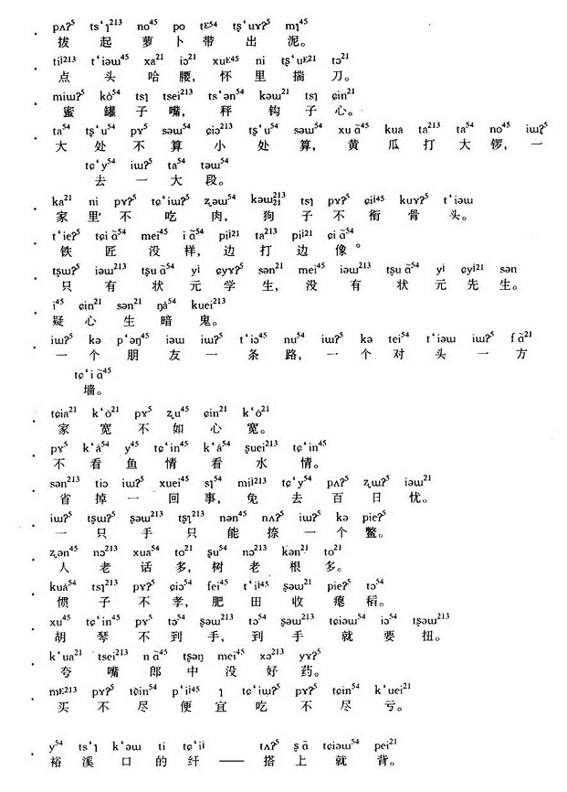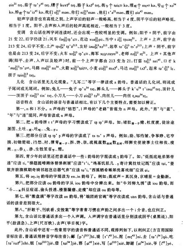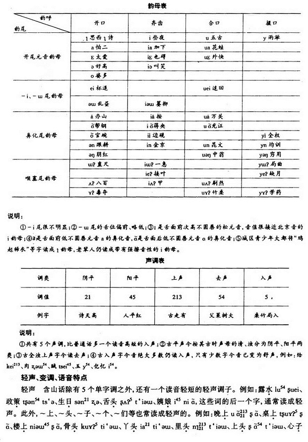 城区含山话有21个辅音声母,1个零声母,45个韵母,5个声调。