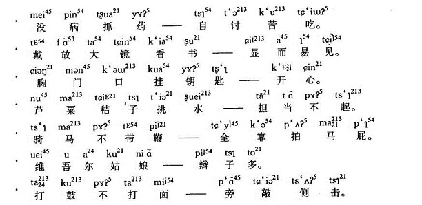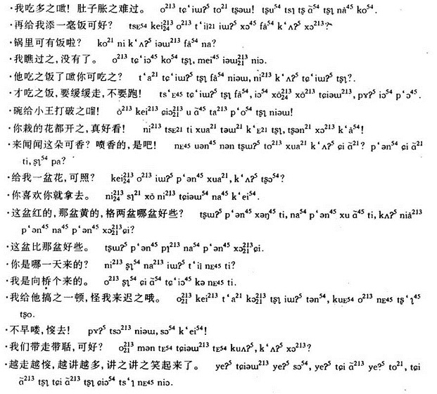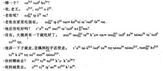 此外,在含北骆集乡的邵集、再安、岗胡、河刘、张塘、金徐等地话,把上声字的调子读成高扬的调值,跟含城、含南话的阳平字的调值大体相同。